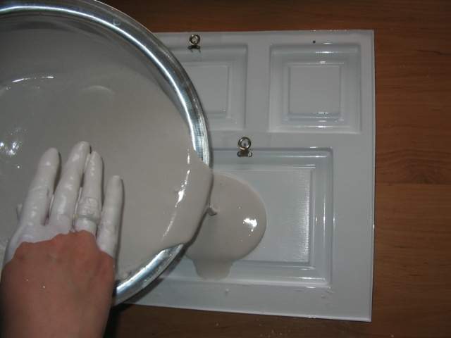 - sádru necháme stvrdnúť a môžeme ju ešte za mokra vyklopiť z formy, vytvrdne nám približne za 2-3 dni (záleží od vlhkosti, tepla a hrúbky odliatku) |
